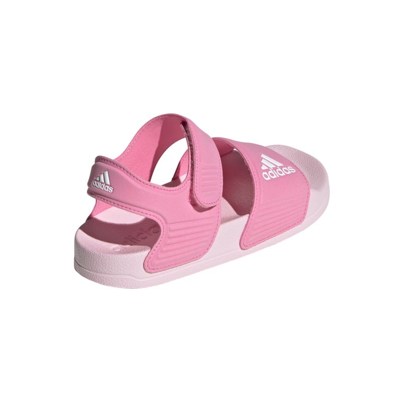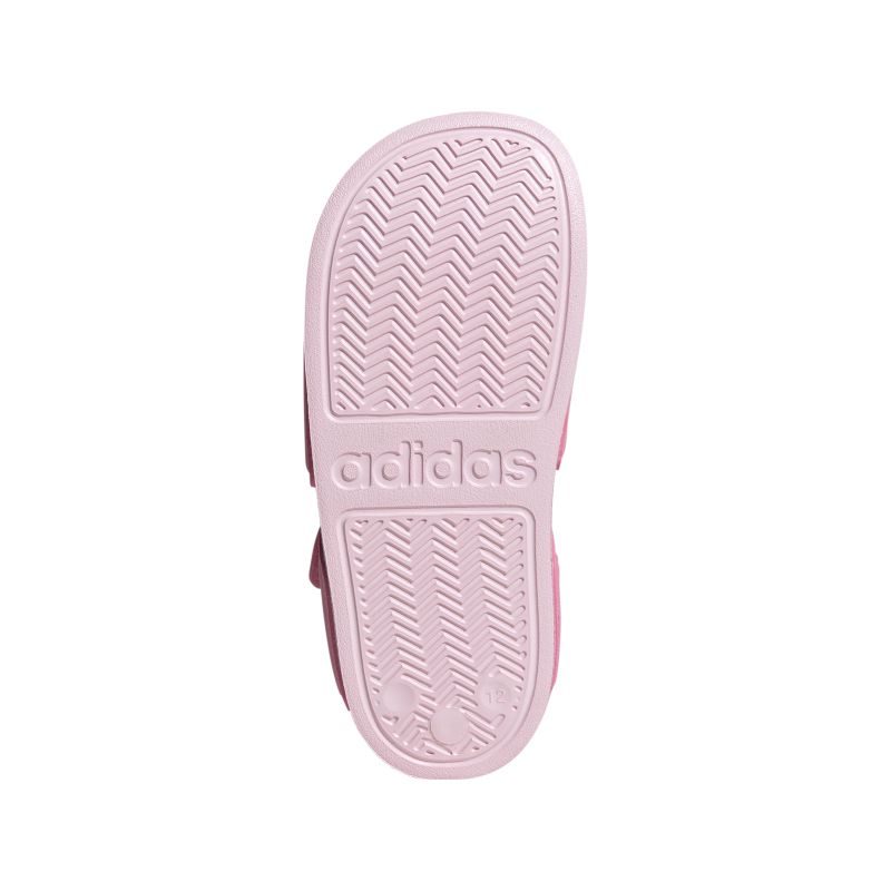 Inspired by classic Adilette slides, these kids' adidas sandals are perfect for sunny days of play in and out of the water. A hook-and-loop strap creates an easy on and off. The quick-drying upper lets them play in comfort until they're back on dry land.