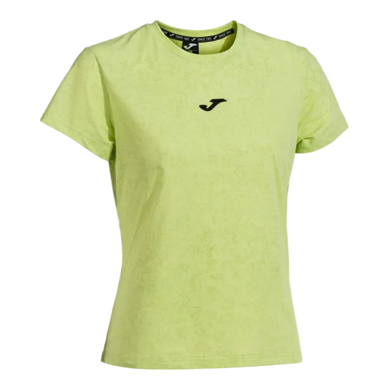 Short-sleeved women's tennis shirt equipped with high technology and quality. Developed to maximize performance in every match. Features a super comfortable round neck with inner covertape. Made with lightweight and breathable fabric that regulates sweat accumulation and maintains a constant body temperature during sports practice. Laser-cut perforations in the armpits help evacuate moisture and control odor. Sublimated design. Joma logo in rubber printing.